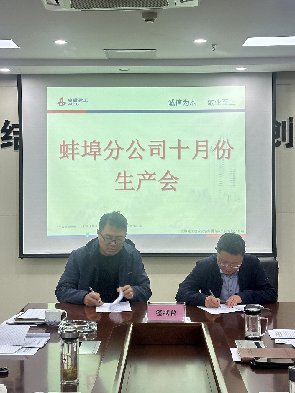 11月1日上午,蚌埠分公司組織召開10月份生產(chǎn)經(jīng)營調(diào)度會,分公司領(lǐng)導班子成員、所屬各項目部、機關(guān)各部門負責人及工程管理部全體員工參加會議,會議由分公司副經(jīng)理張斌主持。