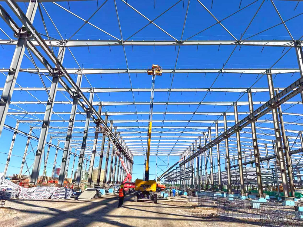 吊車的“長臂”在空中伸展、曲臂車在鋼架間頻繁升降、工程車在場地上來回穿梭、工人們忙碌的身影隨處可見,敲擊聲此起彼伏……針對當前重點建設任務,項目部精細部署,組織施工力量、細化節點安排、調配人機資源,鼓足干勁、狠抓安全、緊扣進度、全員發力,克服高海拔的特殊施工環境和偏遠地區的資源保障困難,項目部提出了“奮戰兩月 決勝年末”的戰斗口號,以“拼”的姿態,“搶”的速度,全力沖刺12月底確保完成廠房封閉目標節點。