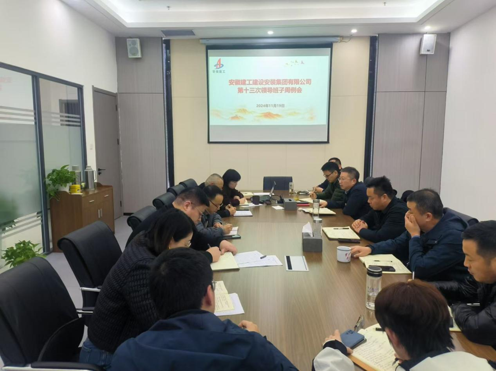 11月19日,建工安裝召開領導班子周例會暨年度工作座談會。公司領導班子成員、機關各部門負責人參加了會議。會議由黨委書記、董事長朱珍宏主持。