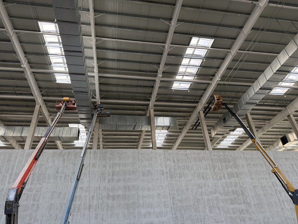 本周,焊裝車間已完成全部實物工程量,循環水、空調水、消防水、生活給水、冷凝水、虹吸雨水等全面進入系統試壓階段。同步配合完成了總包單位焊接機器人進場的細節工作。目前,車間一QA樓與沖壓車間正在進行安裝工作,能源中心同步施工,冷卻塔、板式換熱器已有序進場安裝。
