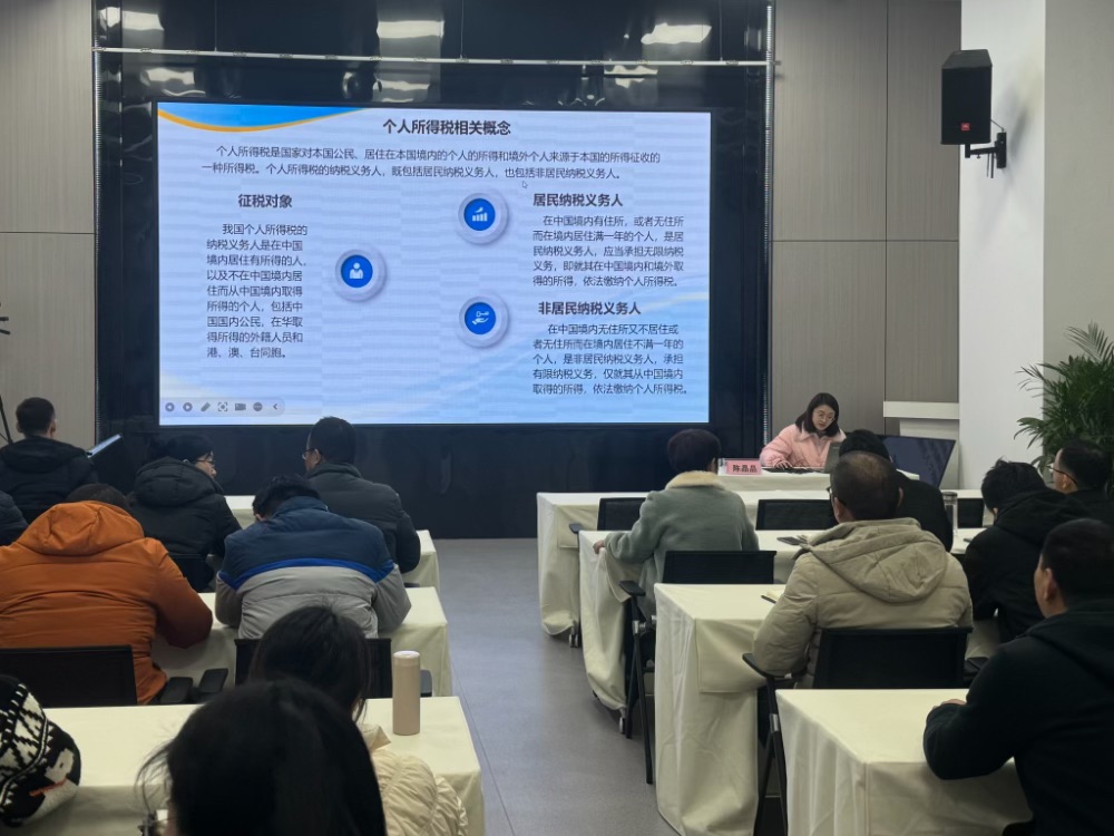本次培訓旨在介紹與每位員工息息相關的個人所得稅業務知識。陳晶晶詳細闡述了個人所得稅的概念、征稅范圍、稅率、計算方法、專項附加扣除及匯算清繳等相關知識,會上宣貫了“財政部、稅務總局關于在全國范圍實施個人養老金個人所得稅優惠政策的公告”(財政部、稅務總局公告2024年第21號),重點對個人專項附加扣除常見問題進行了講解。