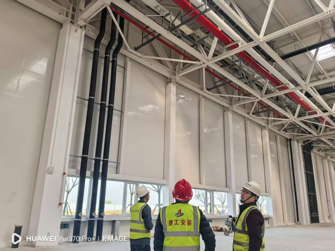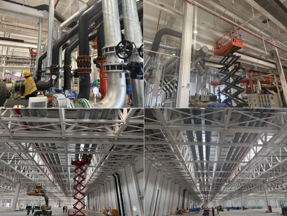 自一季度以來,項目部以“2025開局即決戰(zhàn)”的昂揚斗志,迅速掀起“大干快上”施工熱潮。對各車間、各系統(tǒng)剩余工程量展開全面梳理統(tǒng)計,同時針對剩余工程量堅持每日召開專題會,以倒排計劃為“發(fā)令槍”,對照時間節(jié)點要求各班組加班加點、不折不扣完成。截至發(fā)稿,車間一大面積施工基本完成,形象進度完成約96%;車間二形象進度完成約90%;車間四形象進度完成約92%;站房一各設備管道基本安裝完成,正在調試中,形象進度完成約90%。目前,各車間工藝生產均已進場,燃氣鍋爐點火成功、空壓站完成試運行、工藝24h冷凍水、恒溫恒濕空調均已投入使用;各車間工藝區(qū)送電已到位、供水完成。