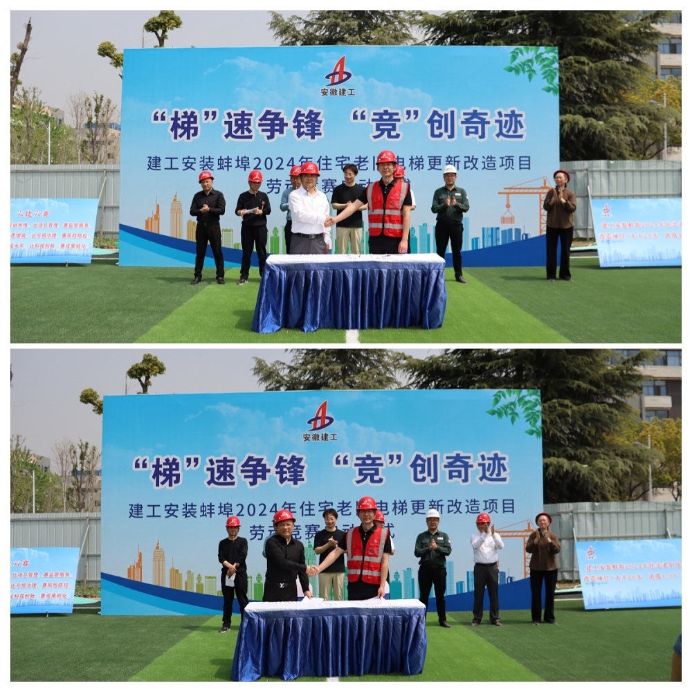 為貫徹集團(tuán)和公司兩級職代會(huì)精神,落實(shí)公司勞動(dòng)競賽活動(dòng)相關(guān)工作要求,加快工程建設(shè)進(jìn)度,不斷提高項(xiàng)目管理和建設(shè)水平,4月10日,建工安裝電梯分公司蚌埠2024年住宅老舊電梯更新改造項(xiàng)目舉行了以“梯”速爭鋒 “競”創(chuàng)奇跡為主題的勞動(dòng)競賽啟動(dòng)儀式,正式吹響了“大干20天,決戰(zhàn)4.30”勞動(dòng)競賽的奮進(jìn)號角。蚌埠市城市投資控股有限公司代表、分公司班子成員、項(xiàng)目部管理人員、各參建單位代表及作業(yè)人員共130余人參加活動(dòng)。