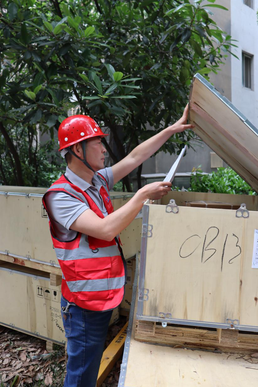蚌埠2024年住宅老舊電梯更新改造一標(biāo)段項(xiàng)目經(jīng)理正在進(jìn)行電梯開箱檢驗(yàn)