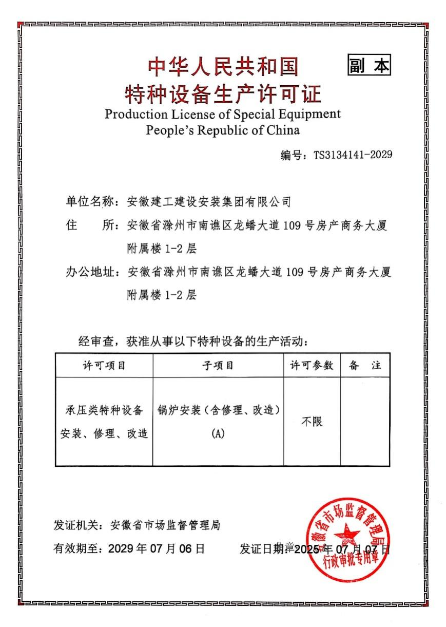 近日,建工安裝“承壓類特種設備安裝、修理、改造—鍋爐安裝(含修理、改造)(A)”新證申報工作順利通過安徽省特種設備檢測院等各方的評審核查,現已取得安徽省市場監(jiān)督管理局頒發(fā)的新證。