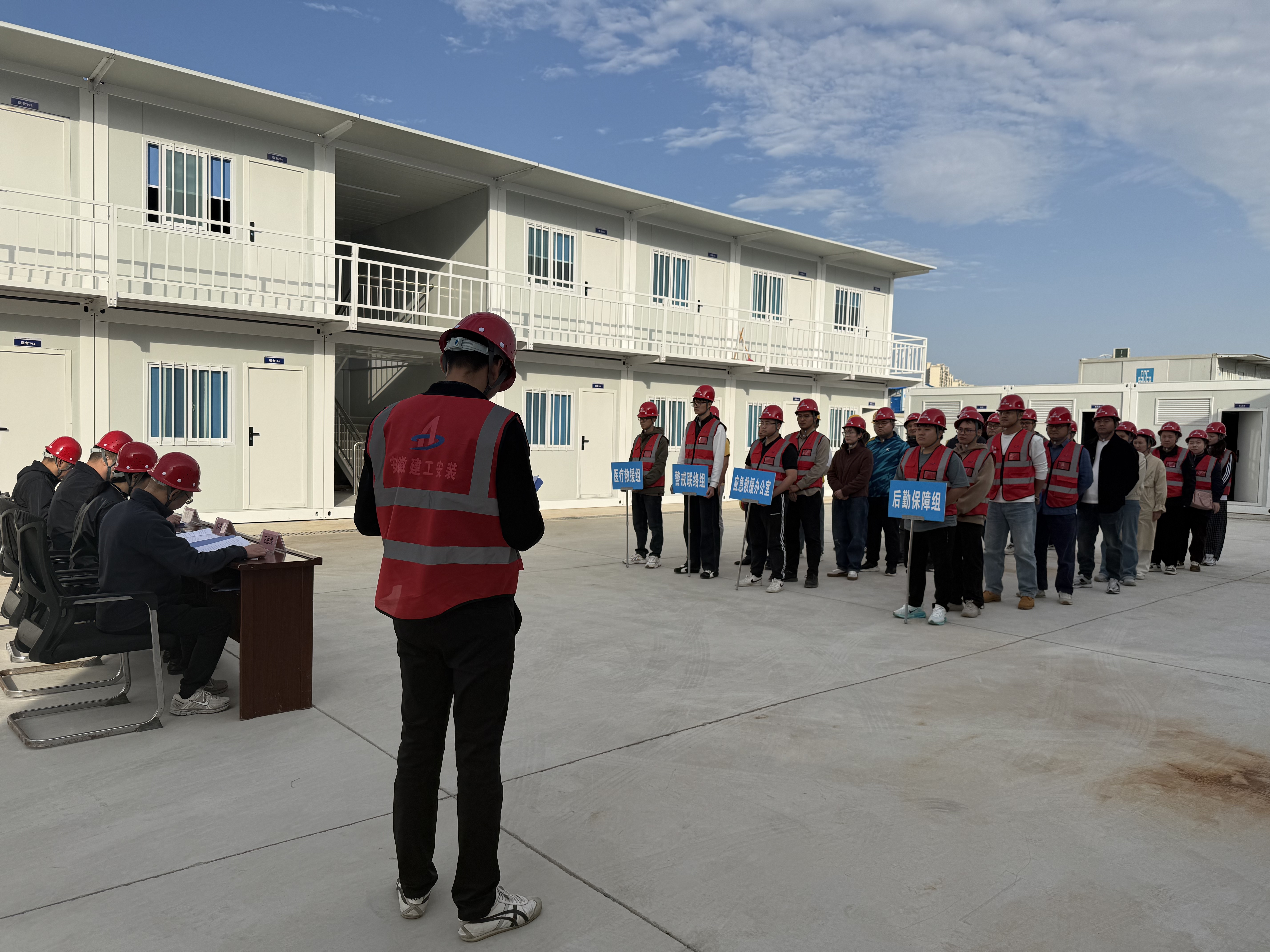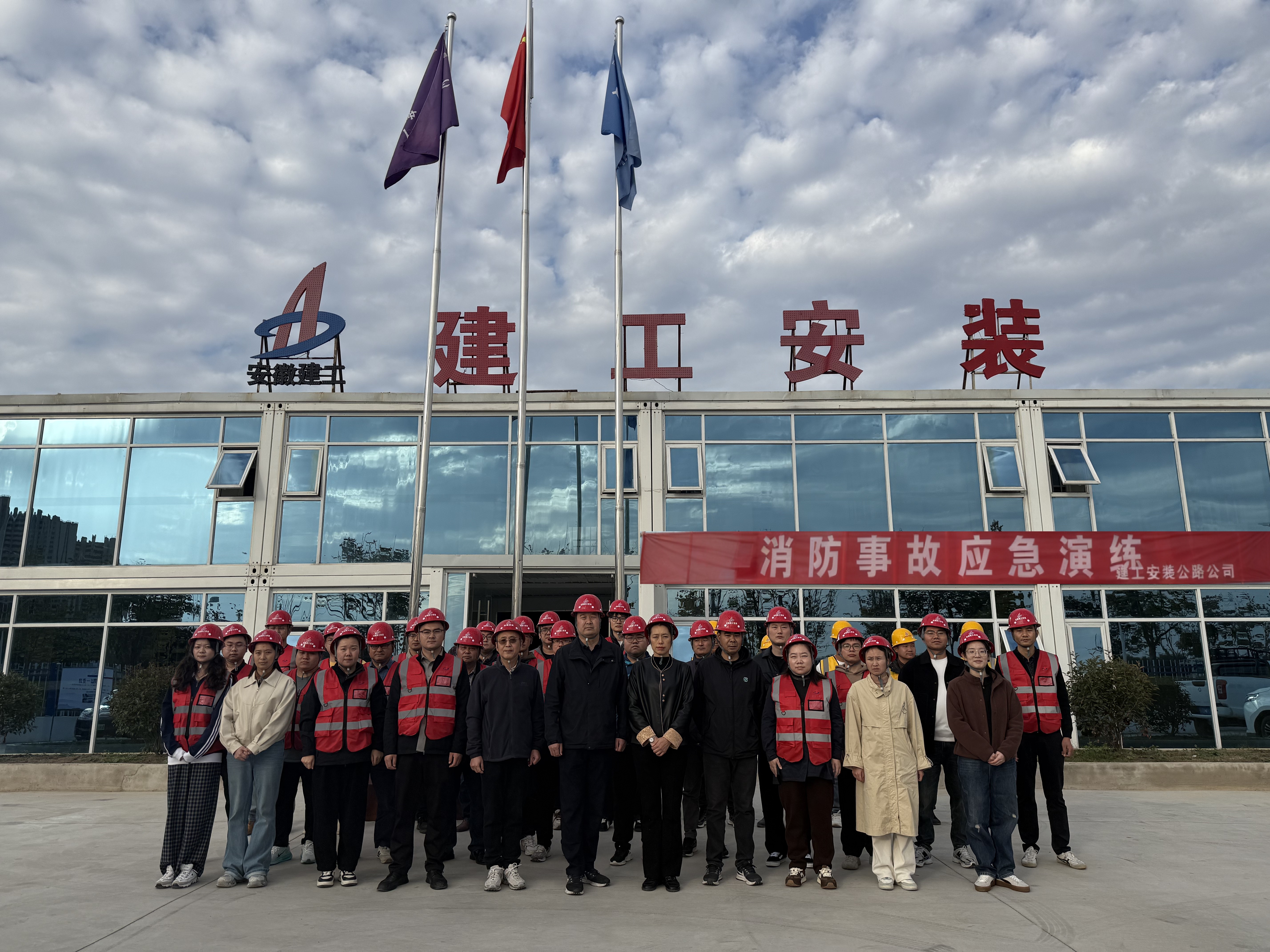 響應2025年“全民消防、生命至上——安全用火用電”消防月號召,11月10日下午,建工安裝公路公司在蘇滁文體中心施工項目部組織消防應急演練,機關及在滁項目部共30余人參加。