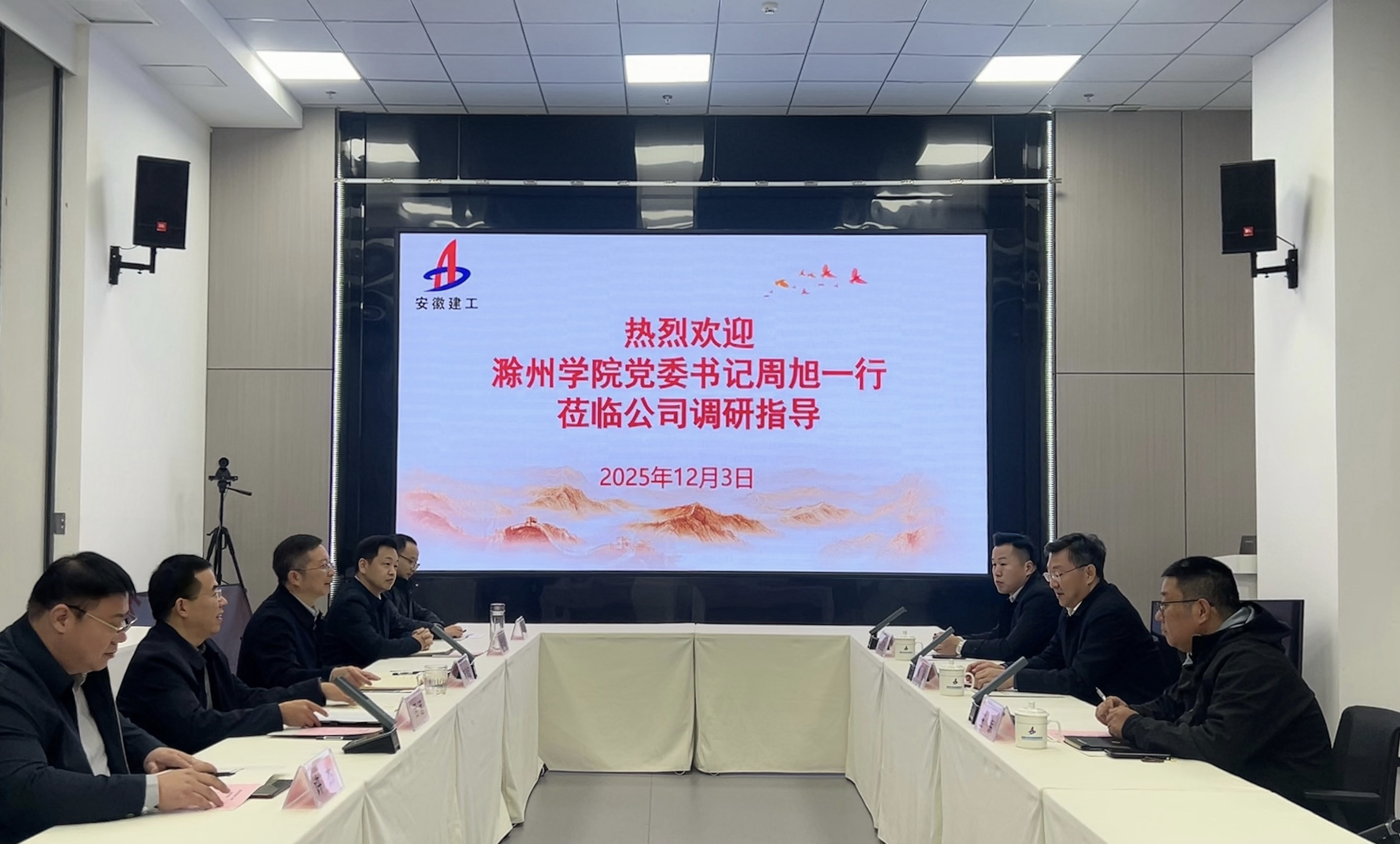 12月3日下午,滁州學(xué)院黨委書(shū)記周旭一行到訪建工安裝,建工安裝黨委書(shū)記、董事長(zhǎng)朱珍宏熱情接待并舉行工作座談。