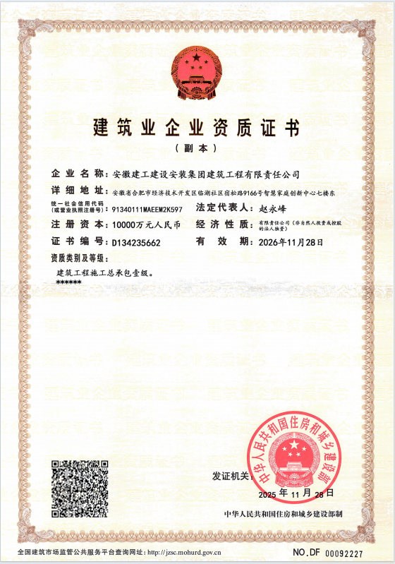 近日,建工安裝建筑公司在資質升級工作中取得里程碑式突破——經國家住房和城鄉建設部核準,建工安裝建筑公司正式獲得“建筑工程施工總承包壹級”資質。這一資質的取得,標志著建工安裝建筑公司綜合實力邁上新臺階,為后續拓展業務范圍、深耕區域市場、提升市場競爭力提供重要支撐。